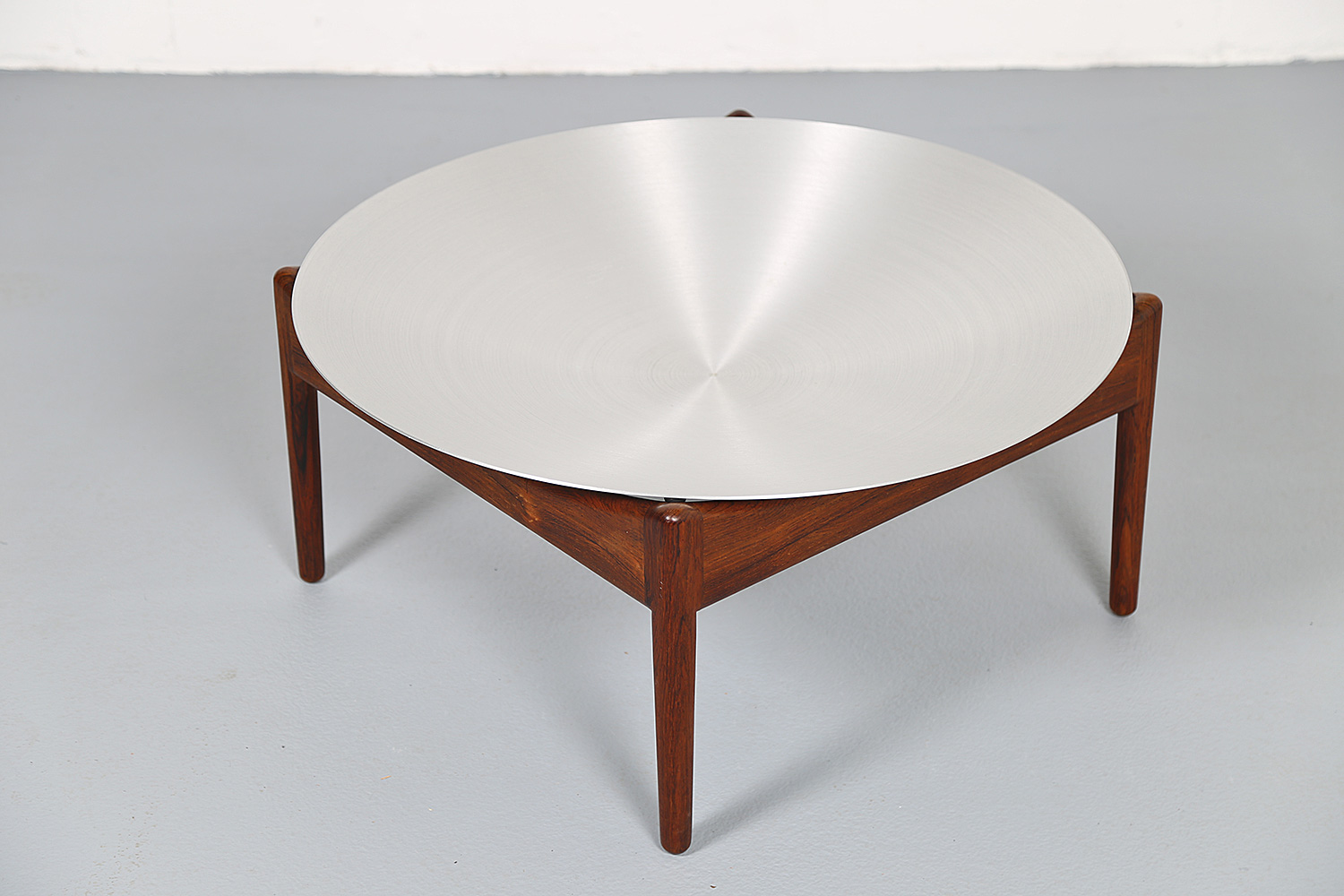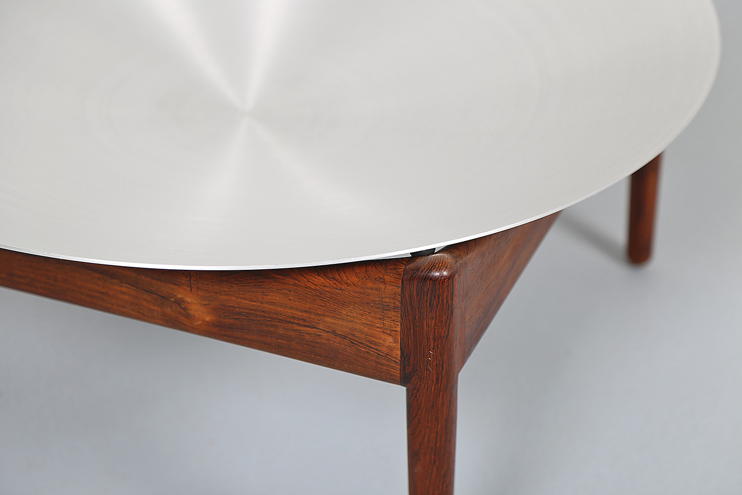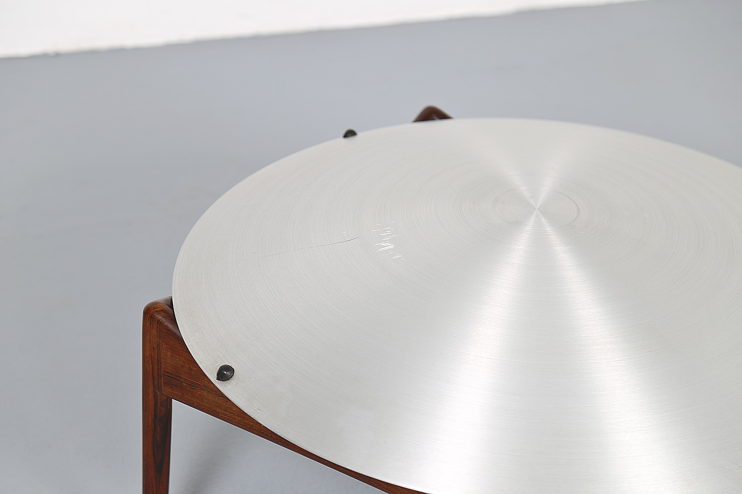 The combination of fine solid wood and a brushed aluminum inlay creates a timeless contrast typical of Danish mid-century modern design. Crafted by Søren Willadsen, it guarantees quality that will last for decades. The piece is in good vintage condition with an authentic patina that underscores its historical value.