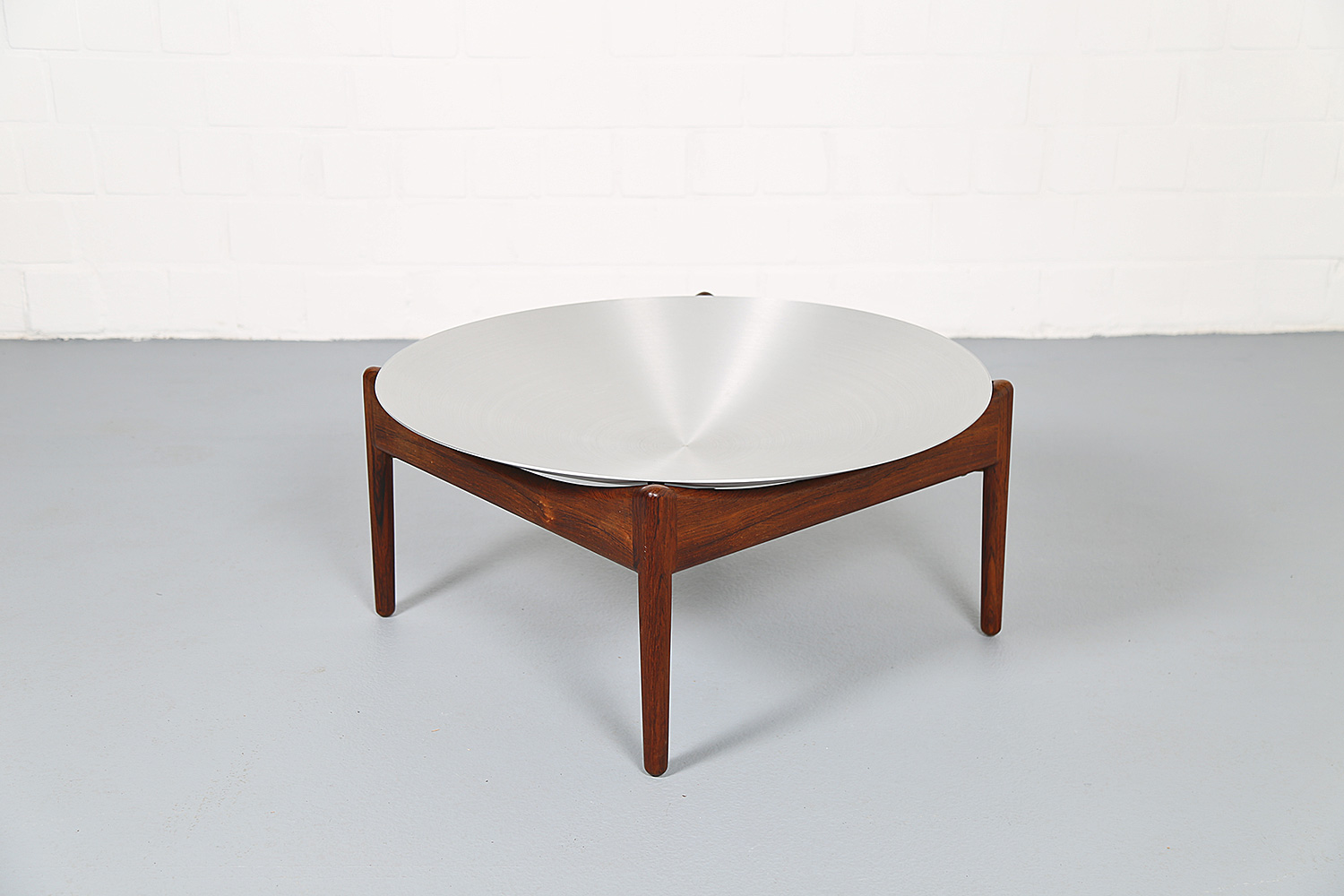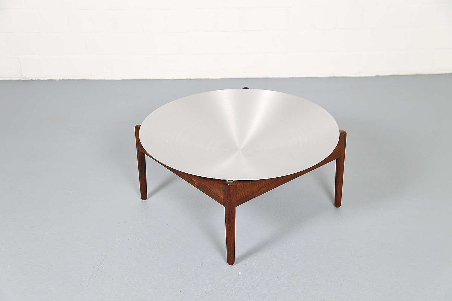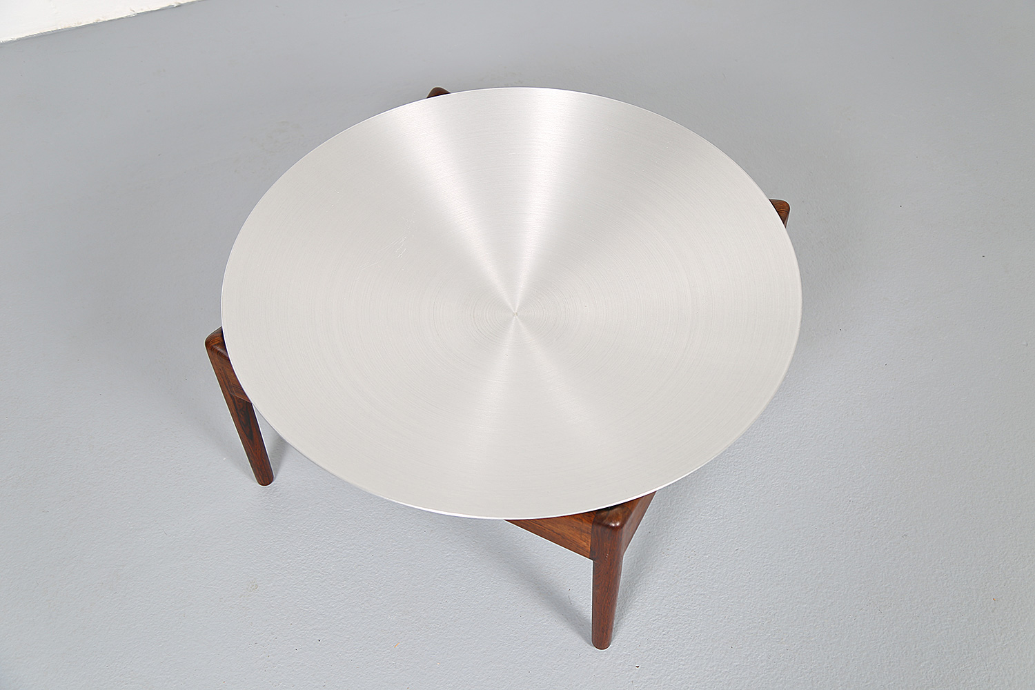 The combination of fine solid wood and a brushed aluminum inlay creates a timeless contrast typical of Danish mid-century modern design. Crafted by Søren Willadsen, it guarantees quality that will last for decades. The piece is in good vintage condition with an authentic patina that underscores its historical value.