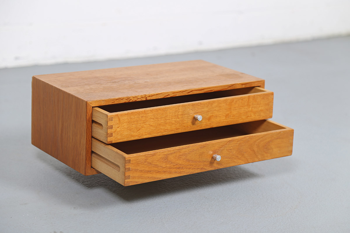 The Model 128 Wall Console, designed by Kai Kristiansen for Aksel Kjersgaard in the 1960s, is a timeless example of Scandinavian design. Crafted from warm teak wood, this console impresses with its clean lines and minimalist form, perfectly blending functionality with aesthetics. The floating appearance of the wall-mounted design creates a light and elegant presence, making it ideal for hallways, living rooms, or bedrooms. In a good vintage condition with a beautiful patina that highlights the quality of the material, this piece is a must-have for enthusiasts of Danish Midcentury furniture.